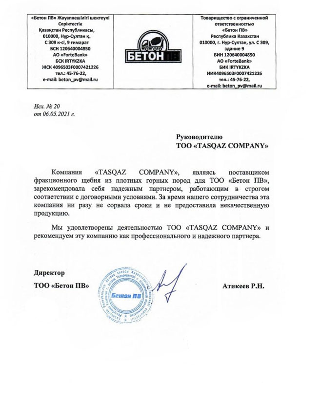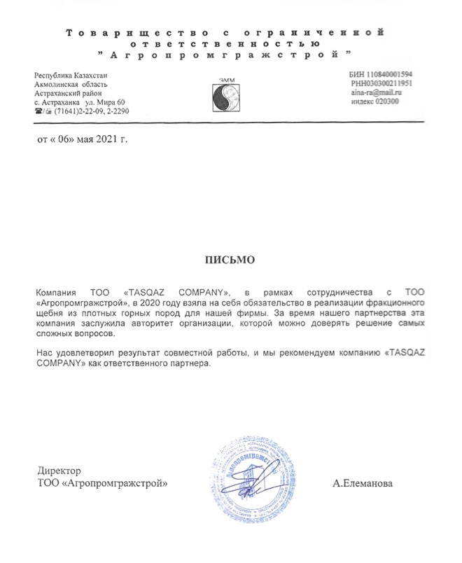 Заманауи карьер, ауқымды ассортимент, кез келген уақытта кез келген көлемде жеткізу. Сертификаттар мен құжаттардың толық жиынтығы.